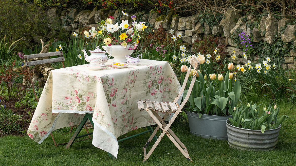 Ella Rose Ivory on White Linen