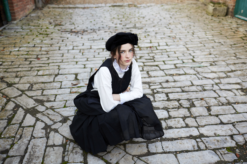 The Mia Dress worn here with the Brown Vintage Veiled Beret and