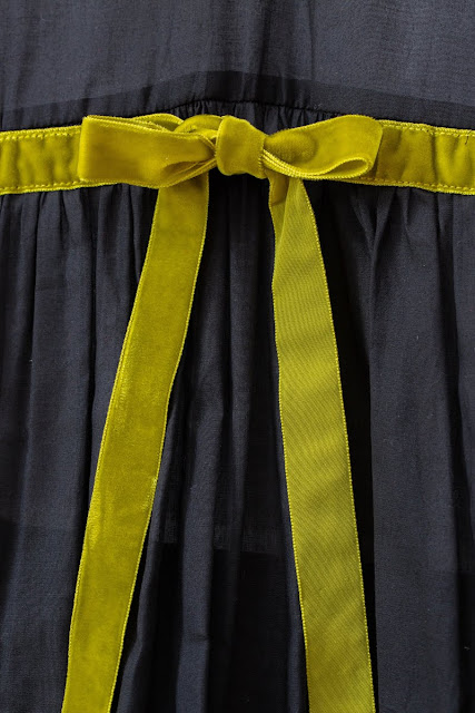 Black Cotton Organza Rachel Dress with Velvet Citrine Bow