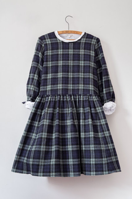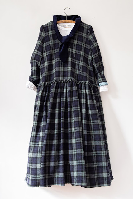 The Fern Dress in Navy Tartan Wool