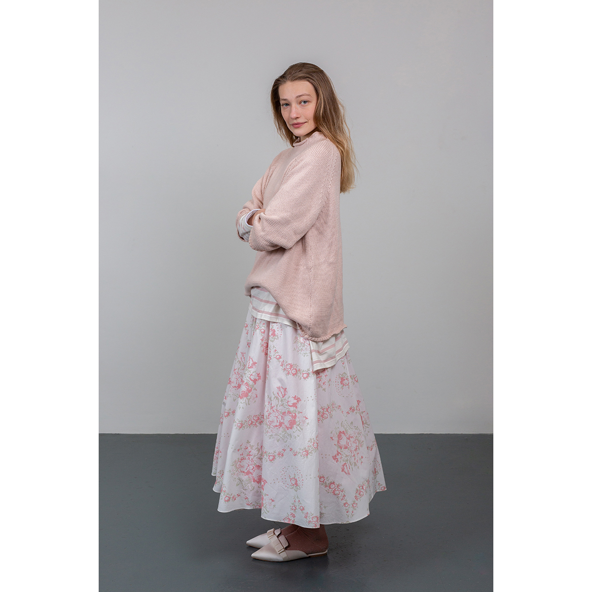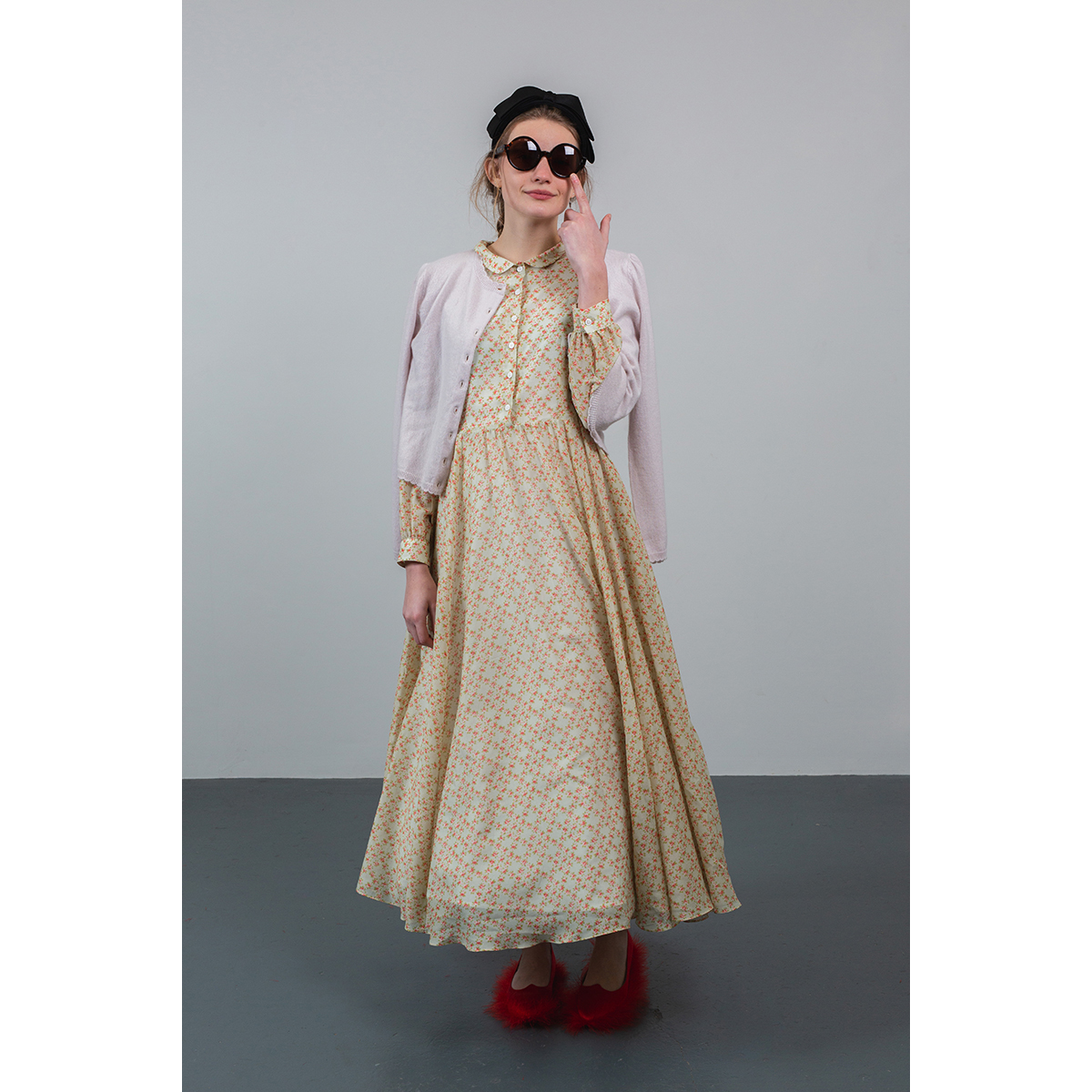 Mamon Dress in Cotton Silk Poppy Floral & Elizabeth Cardigan in Pink Cashmere |