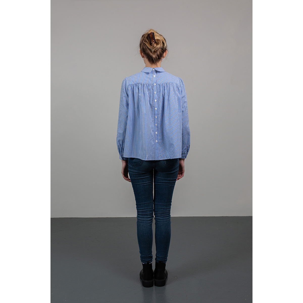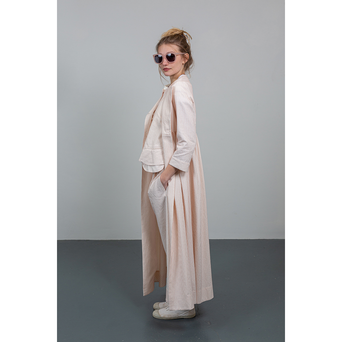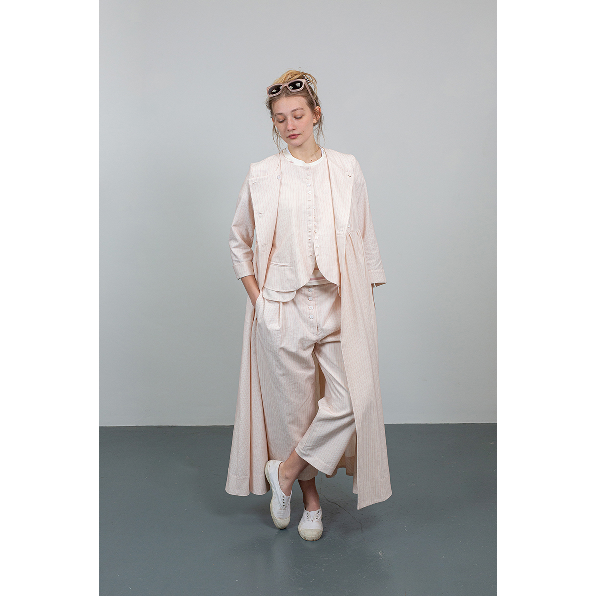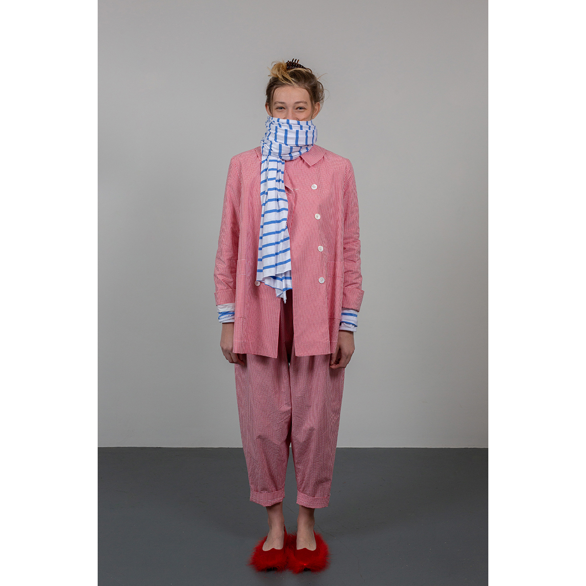 Cassandra Coat & Waist Coat in Organic Cotton Linen Mix in Blue & White Check. Jack Shirt in Organic Cotton & Camilla Trousers in Organic Navy Linen |