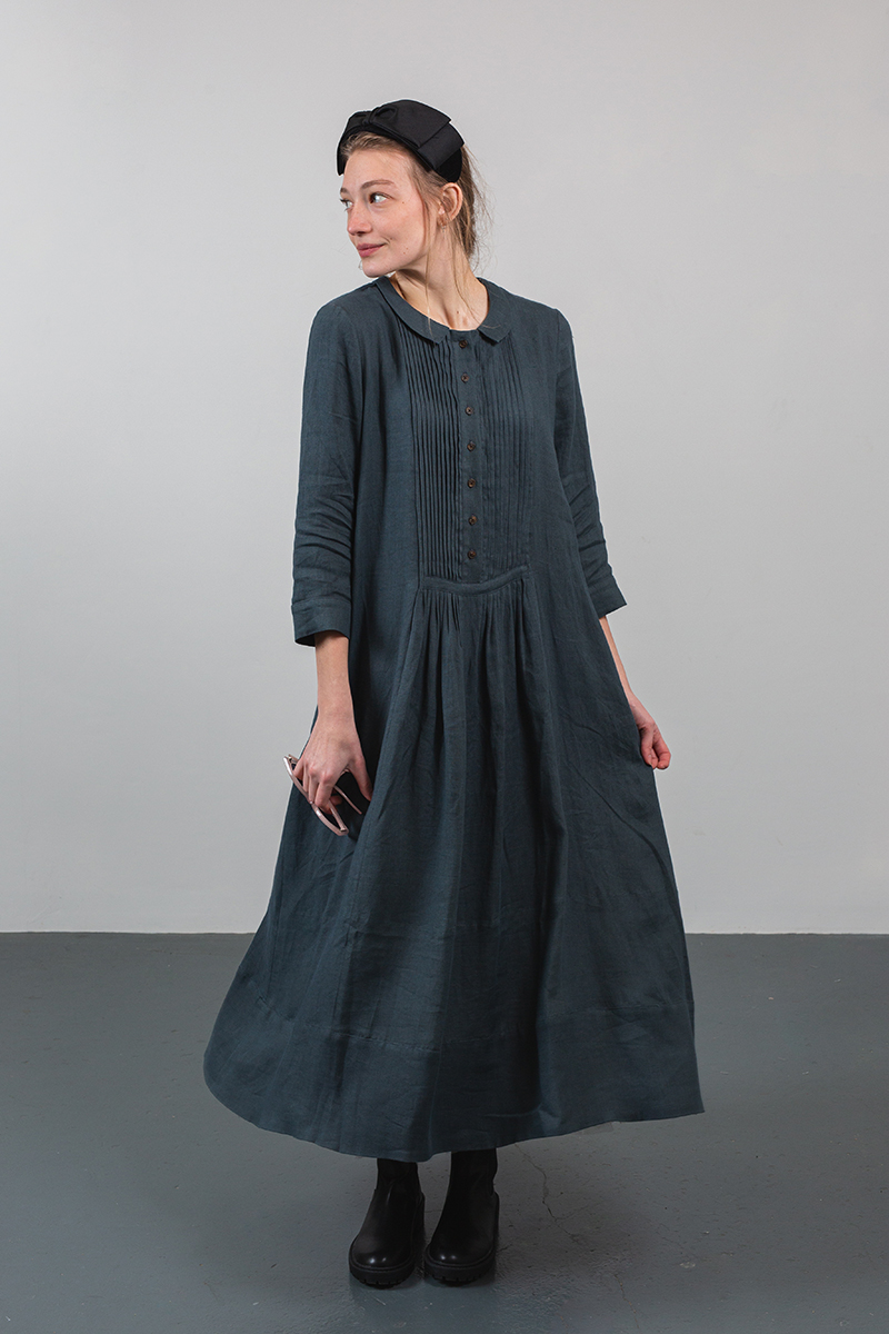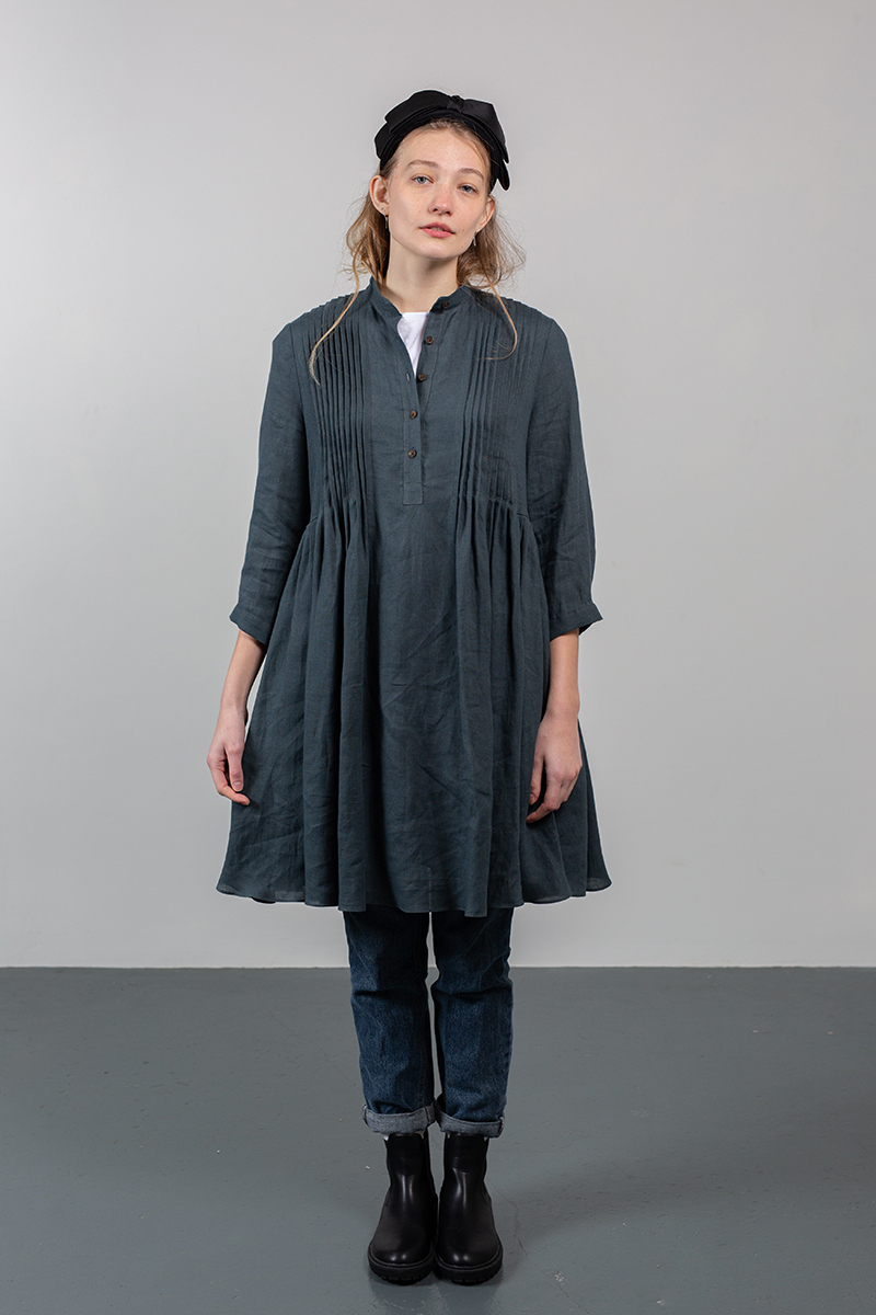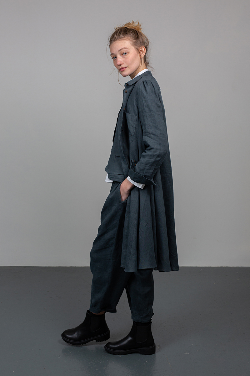 Alexis Coat & Sadie Dress in Organic Navy Linen |