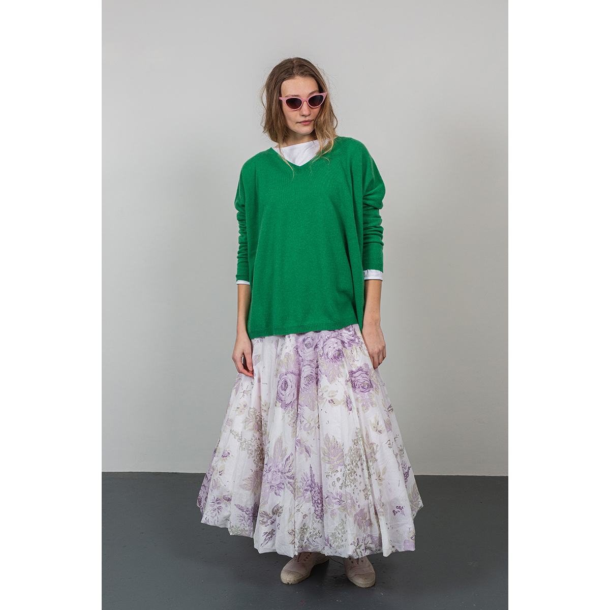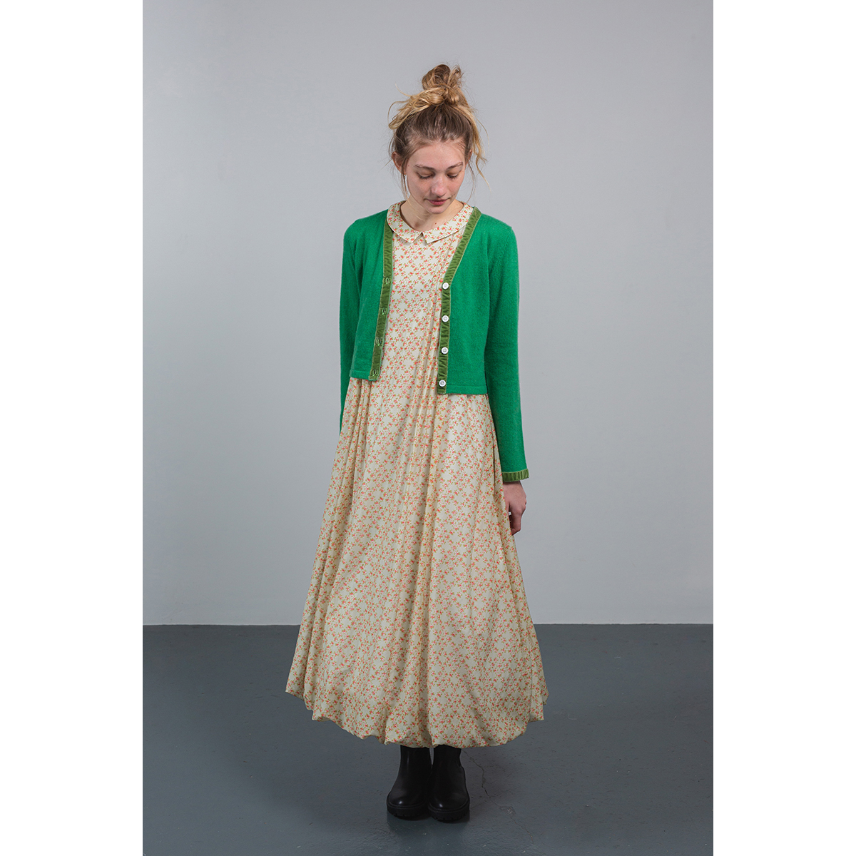 Sandy Dress in Cotton Silk Poppy Floral & Sidney Cardigan in Green Cashmere |