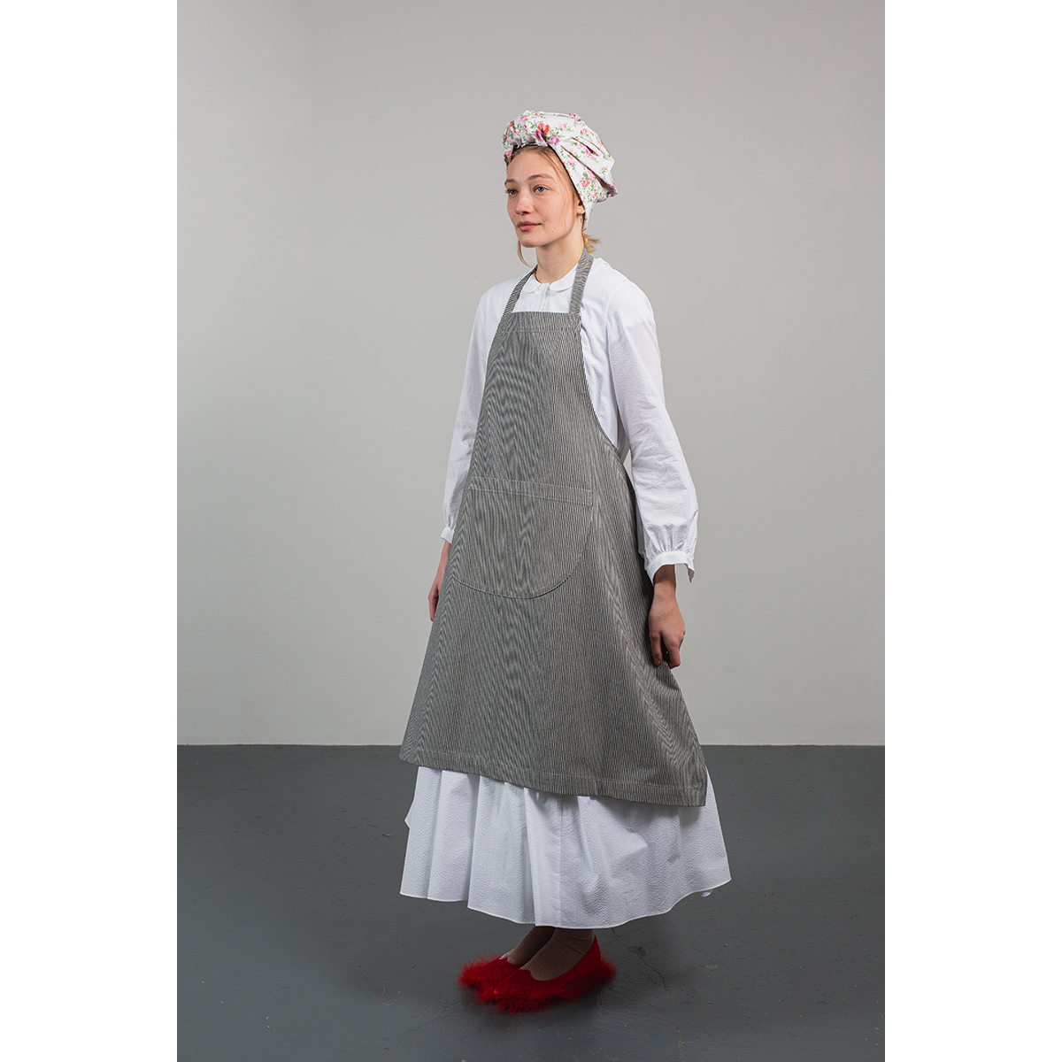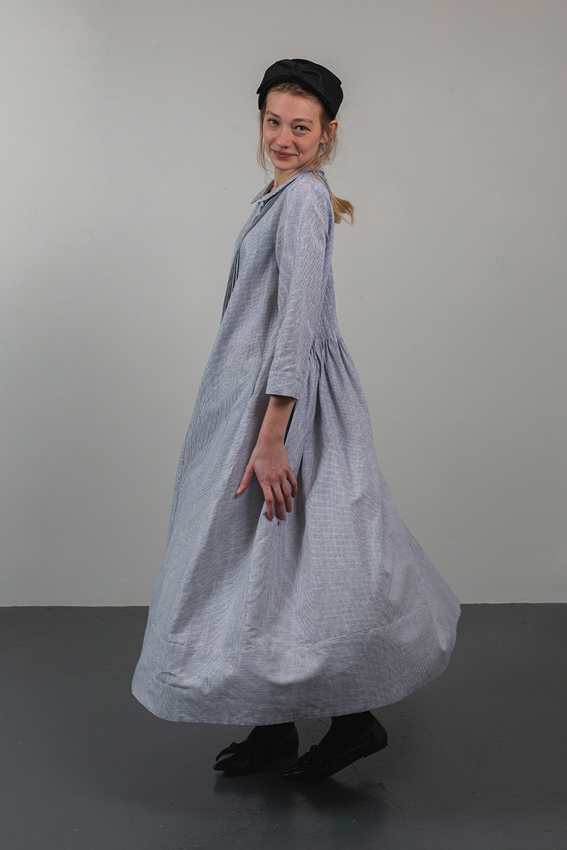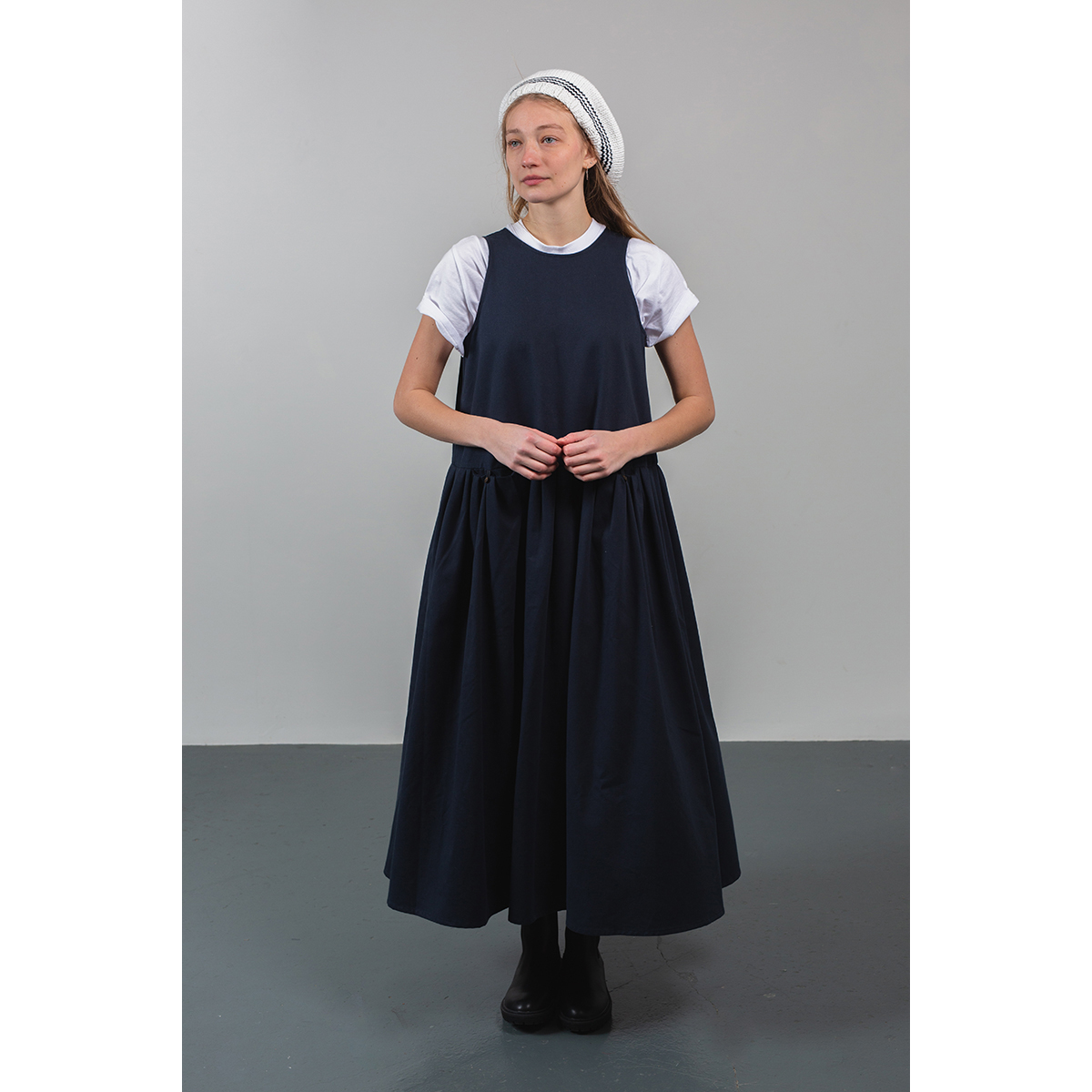 Cathy Dress in Stone Washed Navy Drill & Organic Cotton Beret |