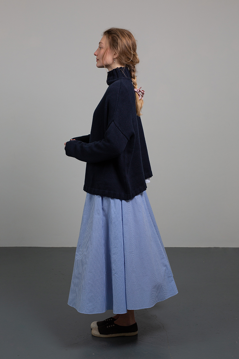This season, all of our knitwear is made from organic cotton & our jersey collection is made from half & half recycled and organic cotton. The organic cotton is grown in India and it is made in China by a brilliant supplier we have worked with for 15 years.