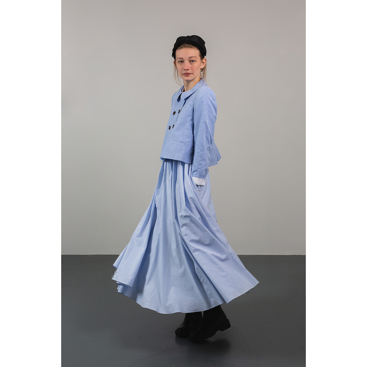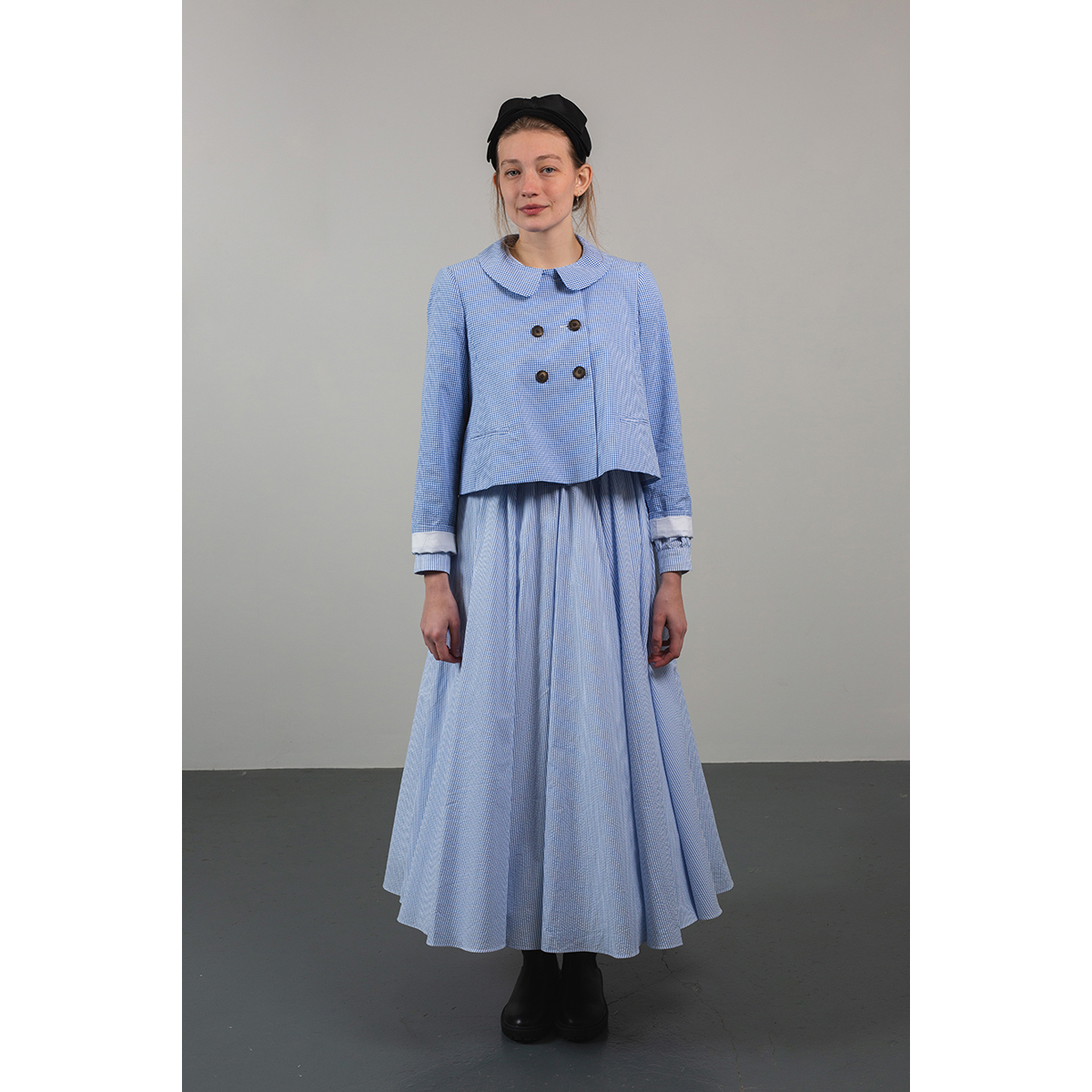Mamon Dress & Hettie Jacket in Blue Seersucker Gingham & Stripe |
