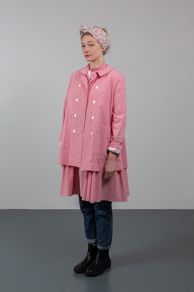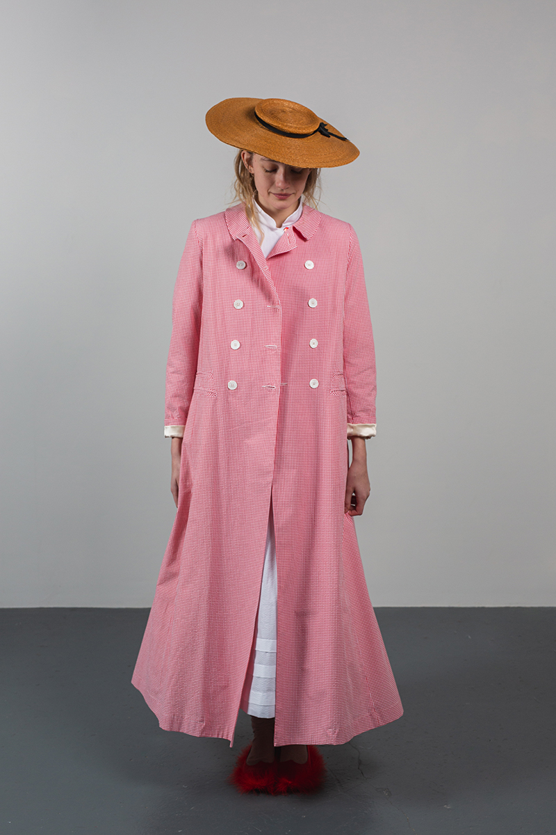 Cassandra Coat in Red Seersucker Gingham, Augie Dress in White Seersucker |