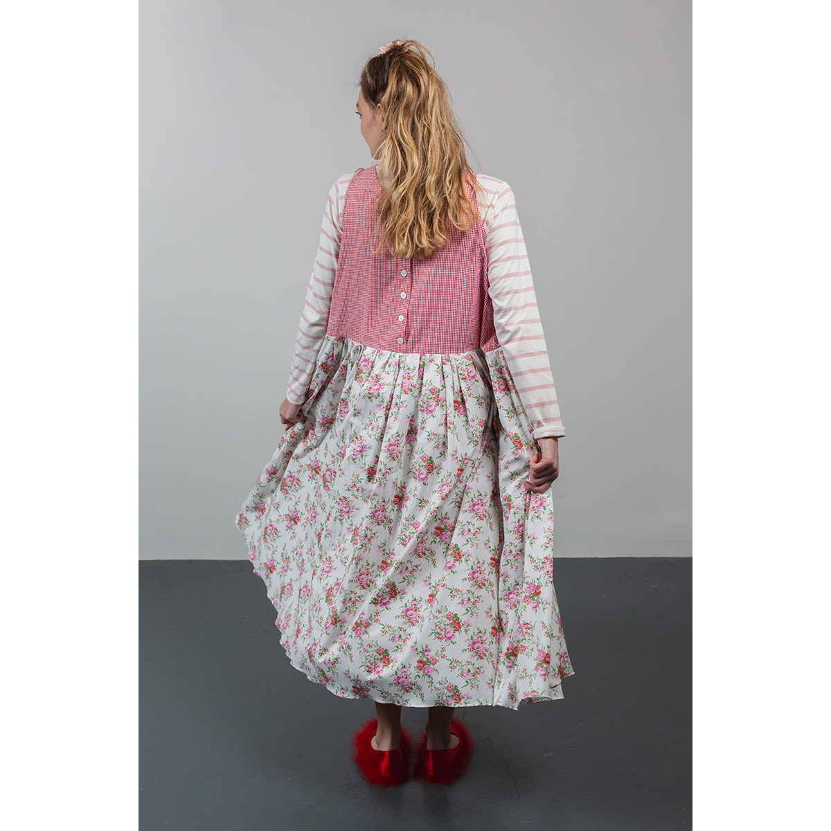 Cathy Dress in Red Gingham & Pink Floral Poplin with Penguin T Shirt in Organic Pink Stripe |