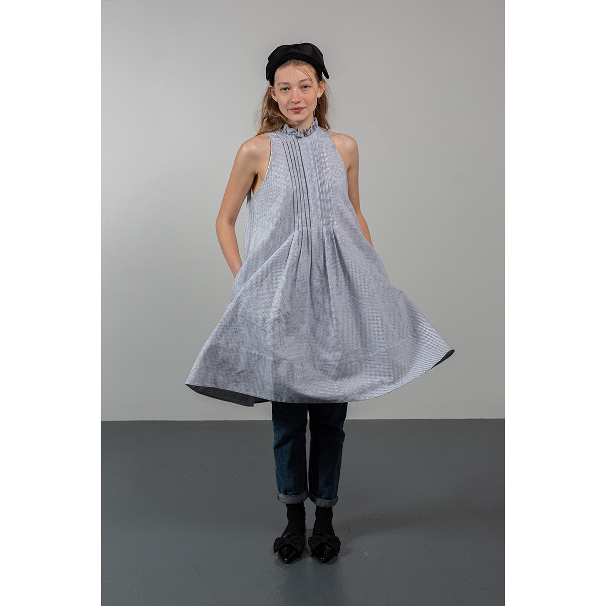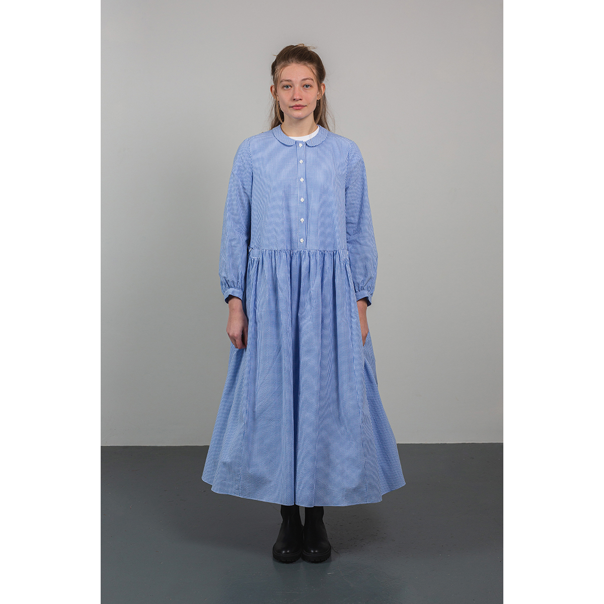 Monique Dress in Organic Cotton Linen Mix in Blue and White Check |