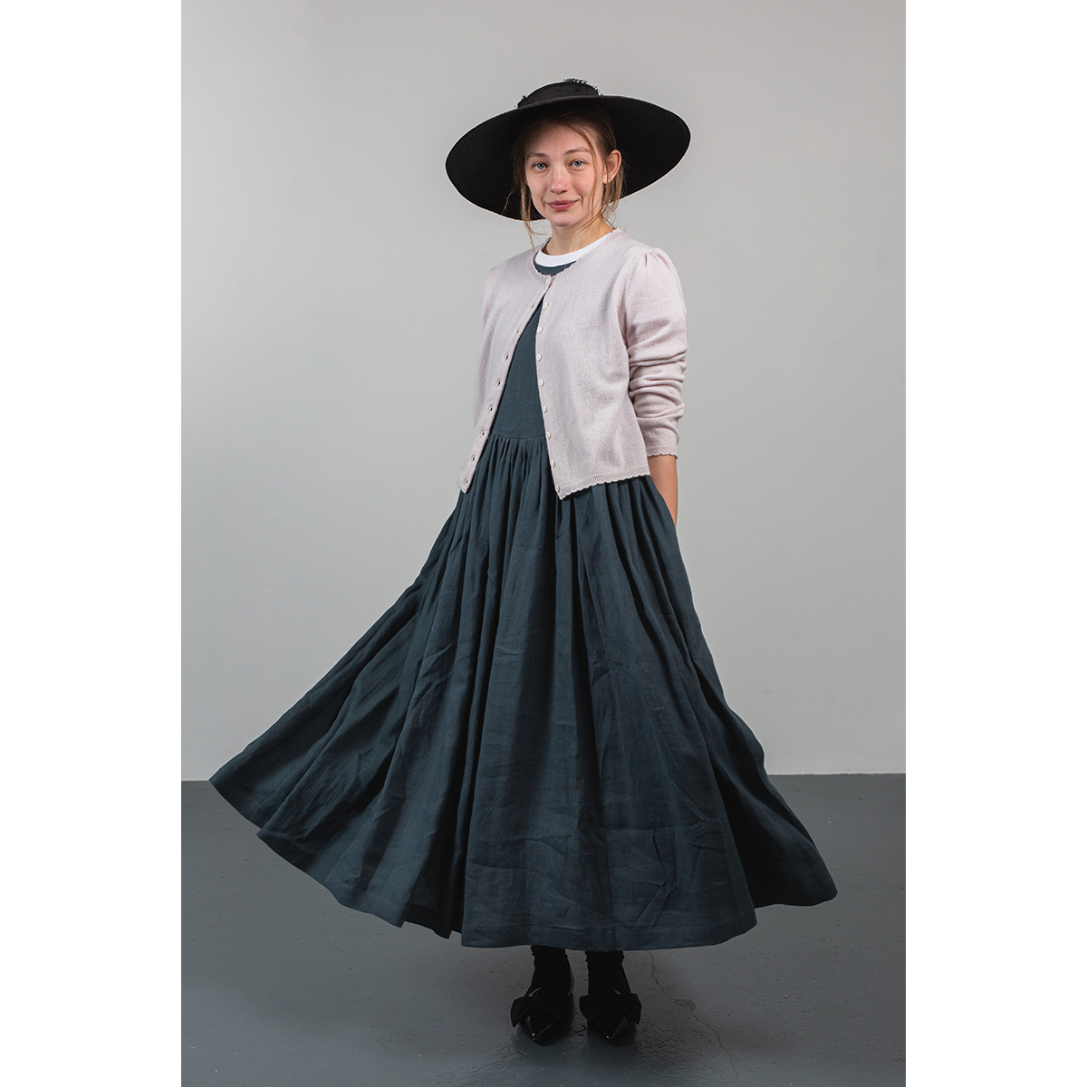 Sadie Dress in Organic Navy Linen & Elizabeth Cardigan in Pink Cashmere |